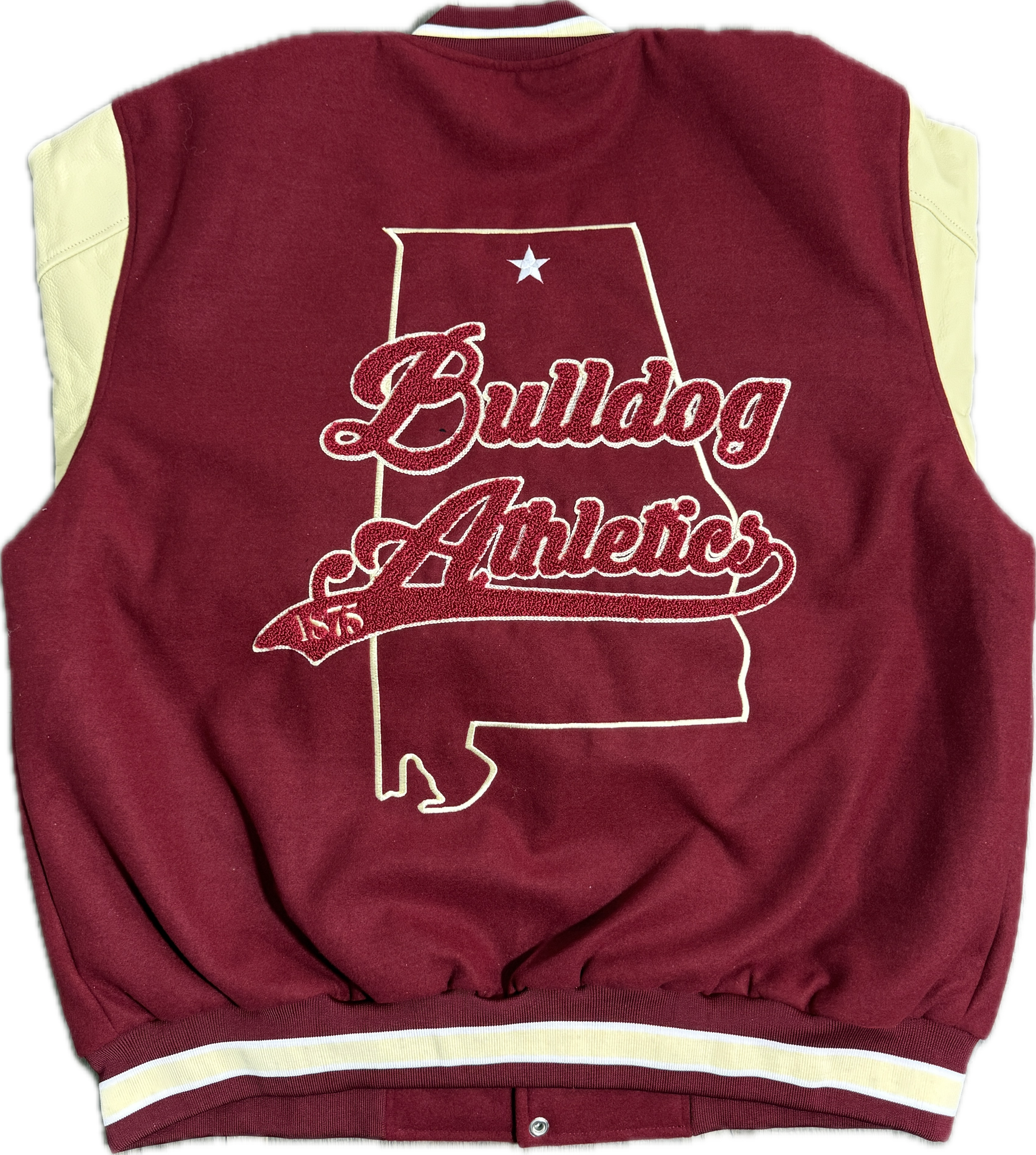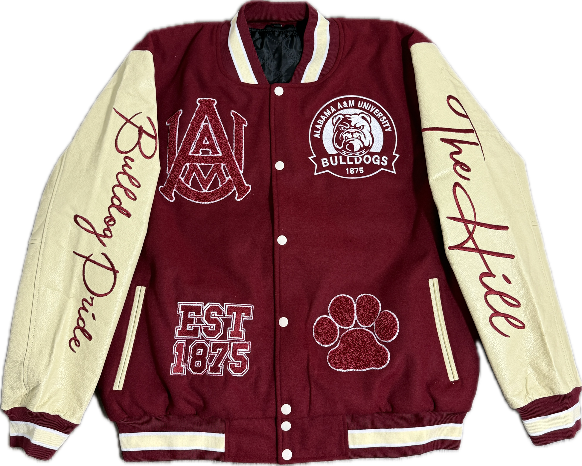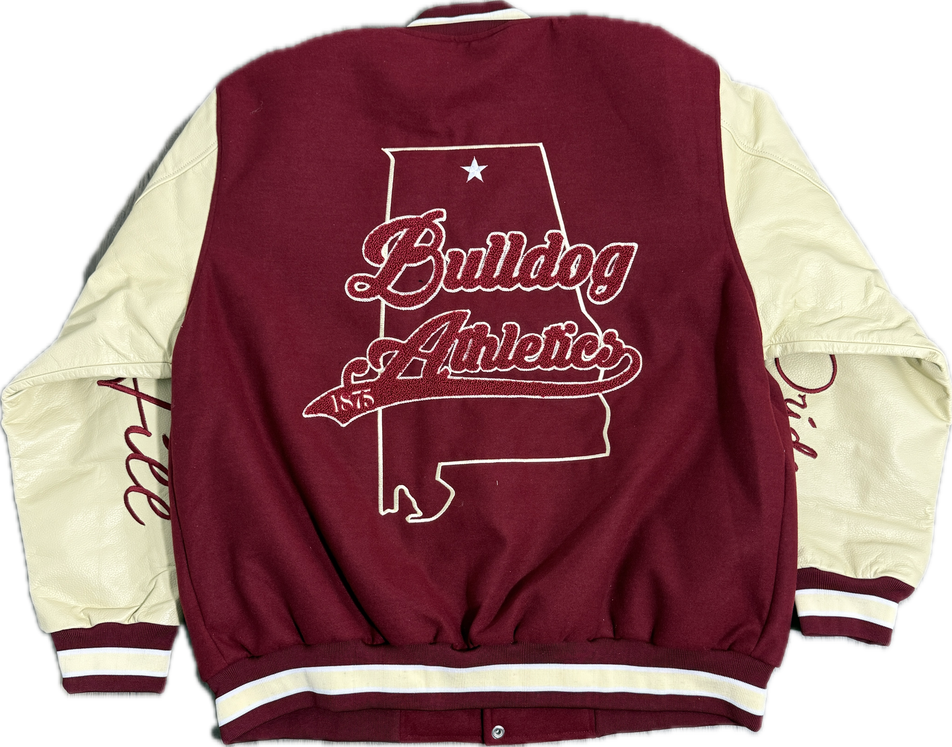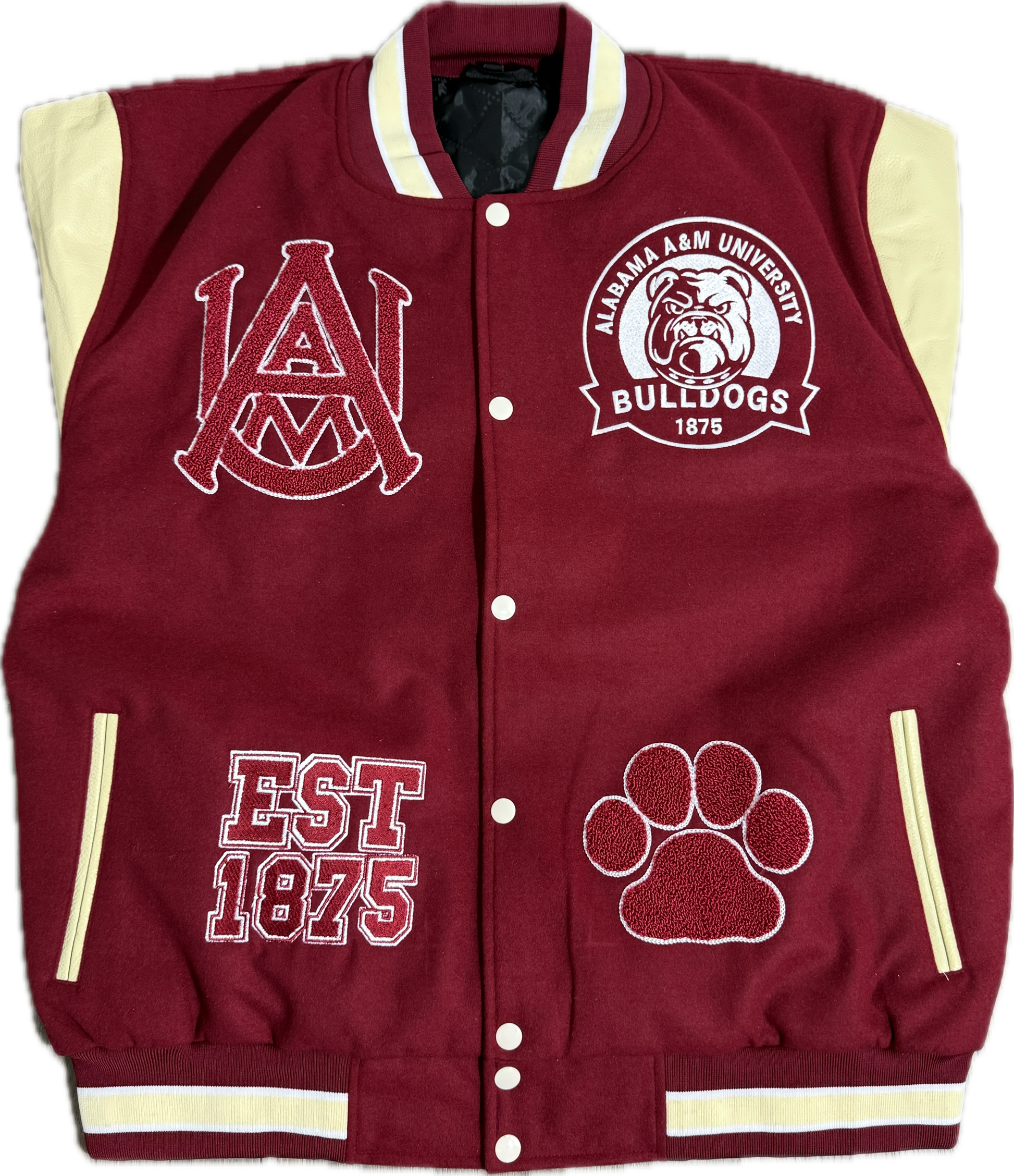 Design: Direct embroidery on sleeves, chenille & embroidery patches on the front and back.