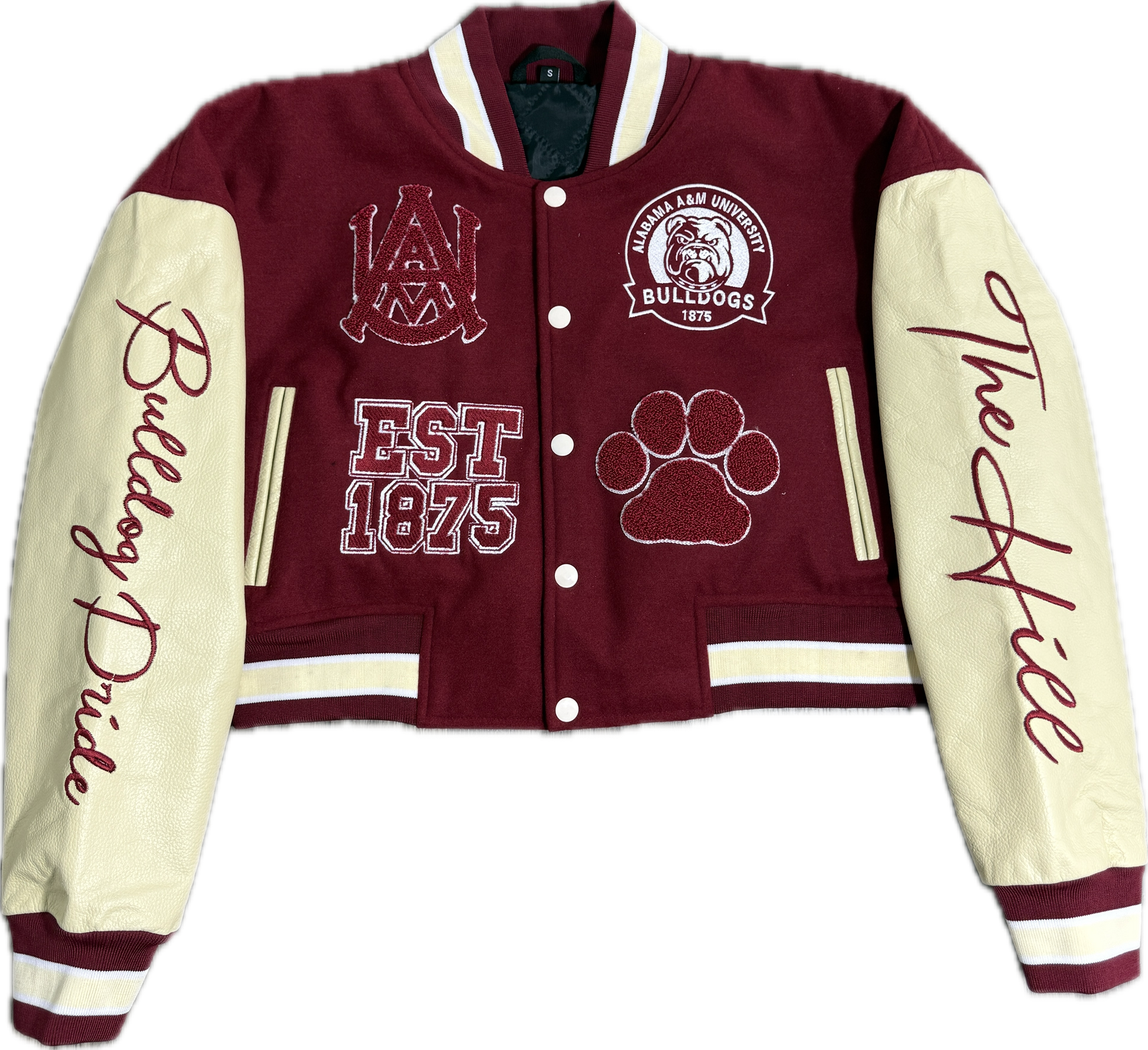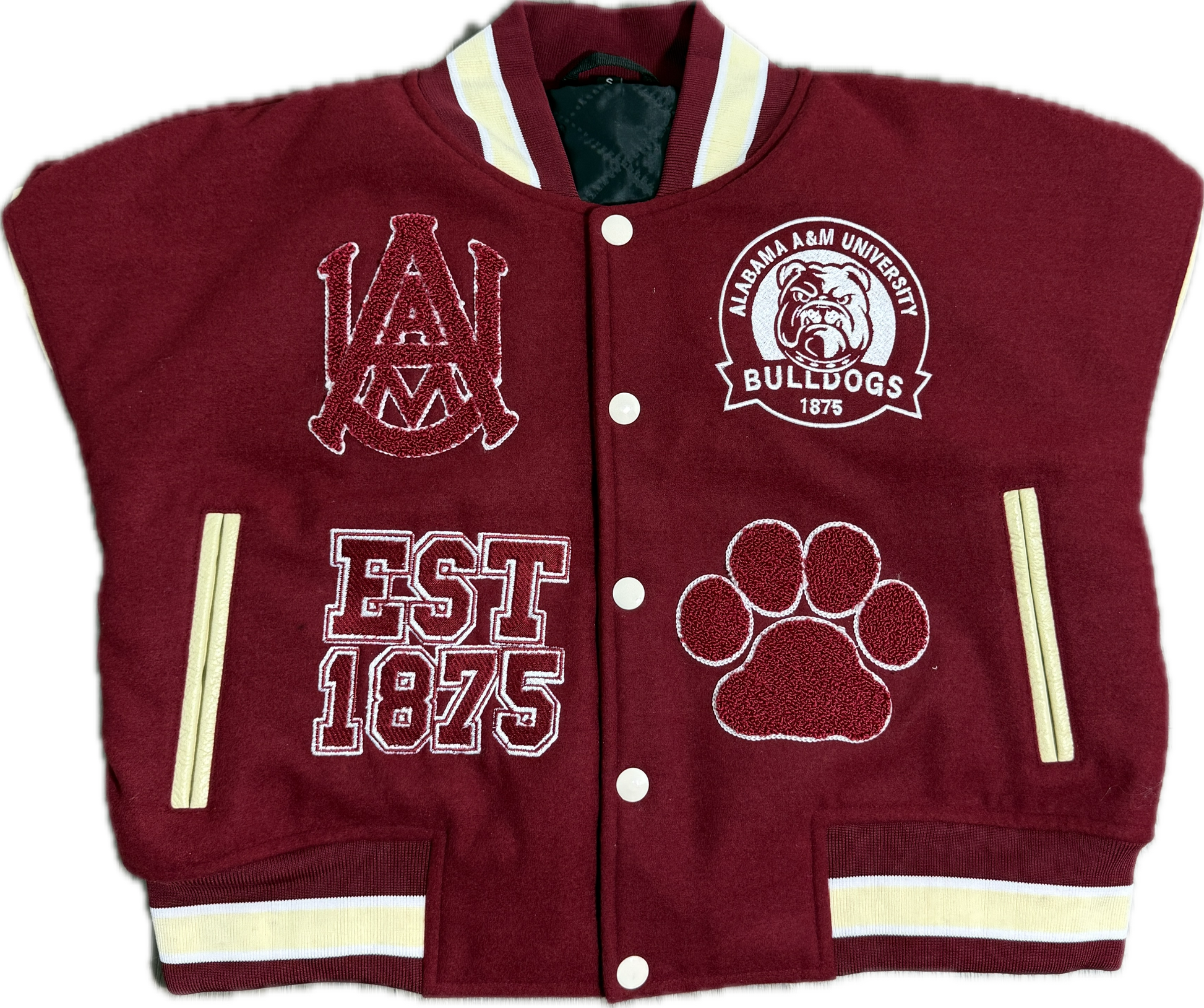 Design: Direct embroidery on sleeves, chenille & embroidery patches on the front and back.