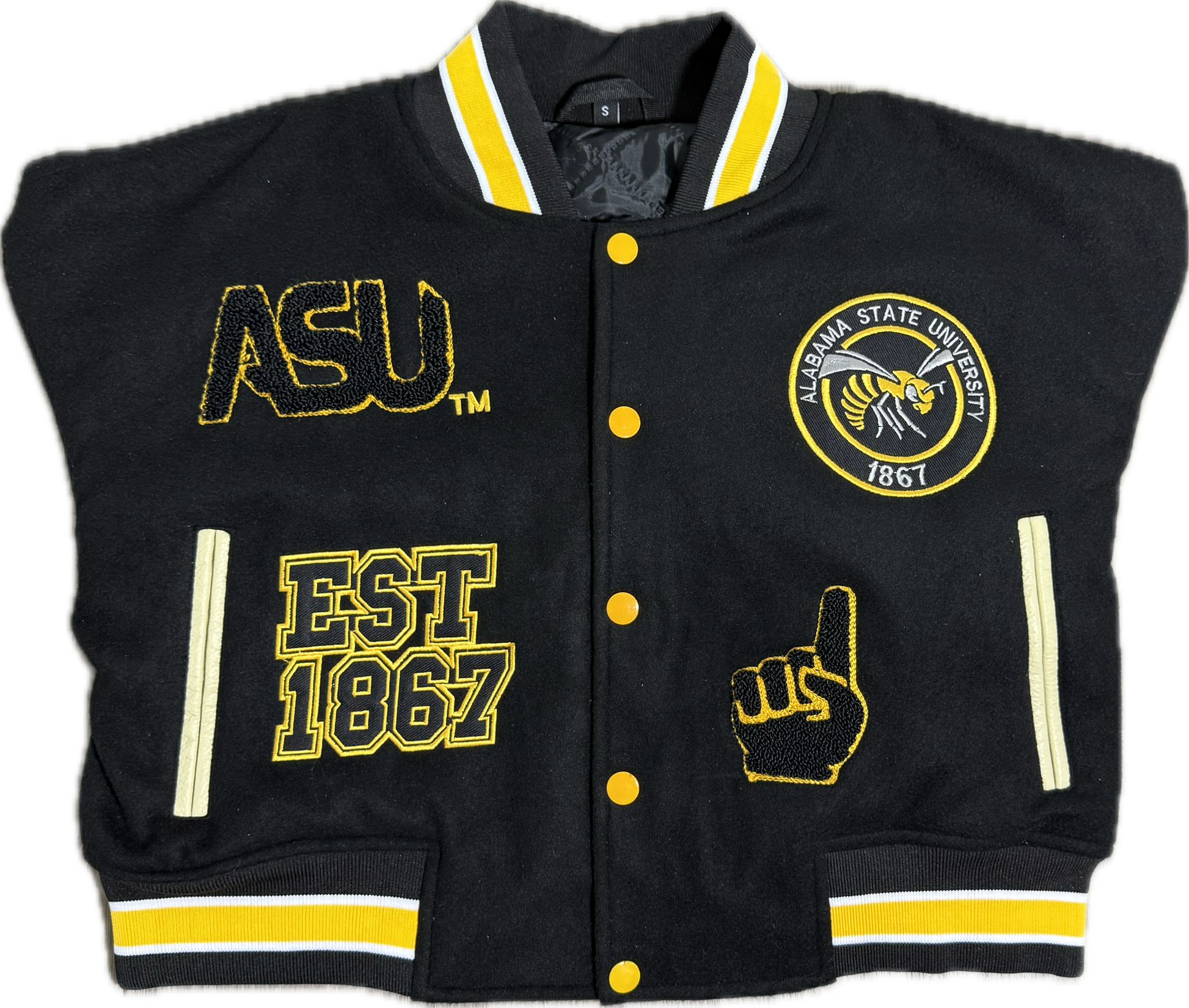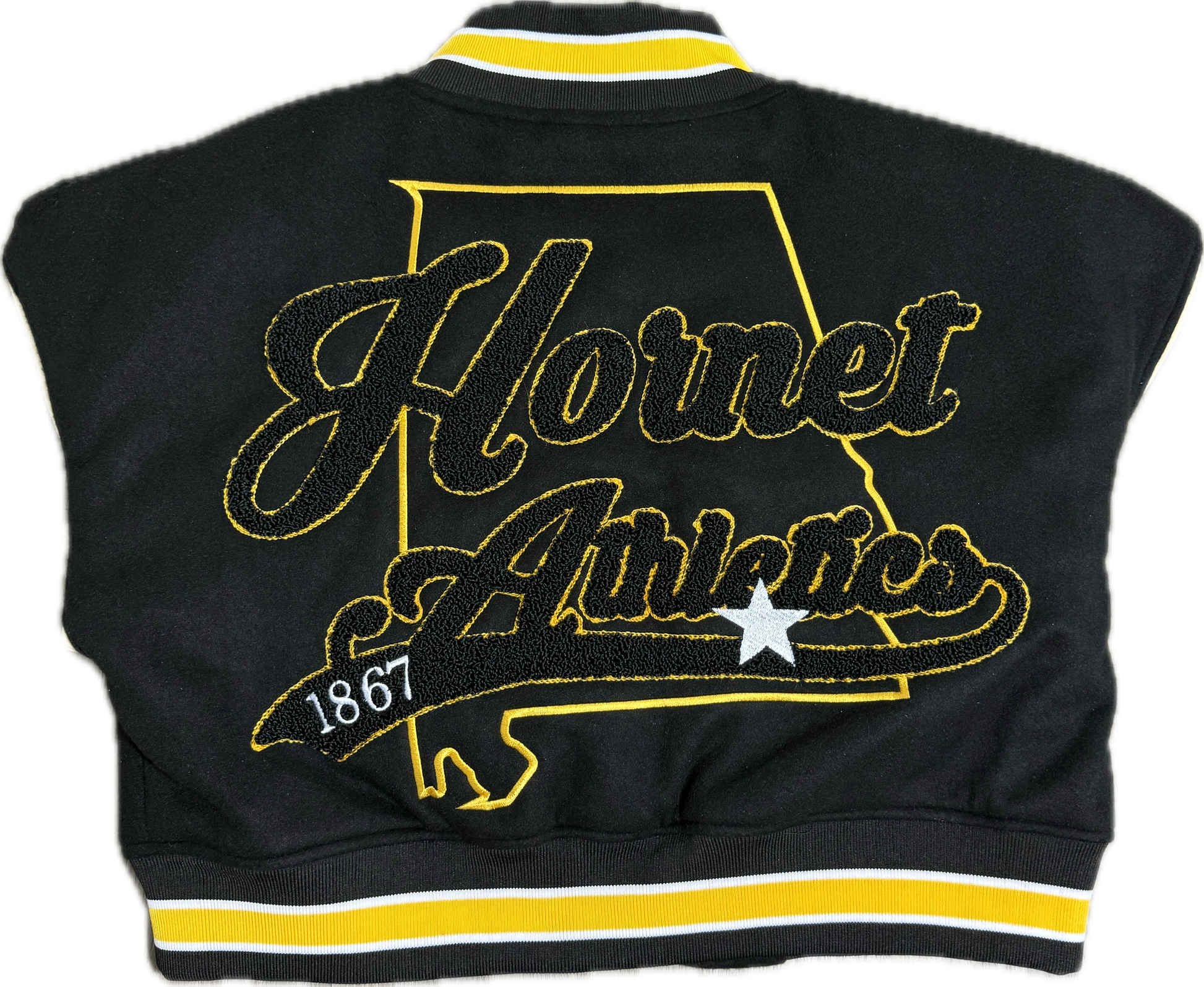 Design: Direct embroidery on sleeves, chenille & embroidery patches on the front and back.