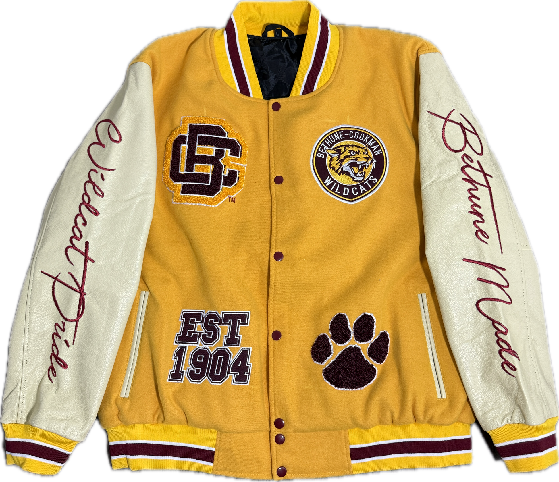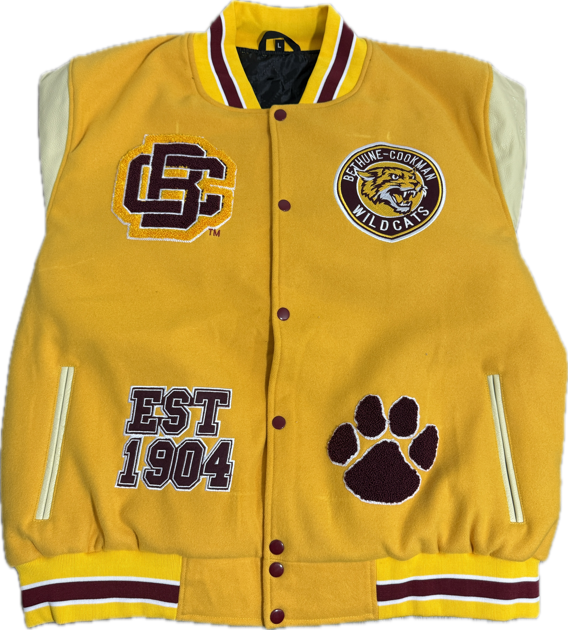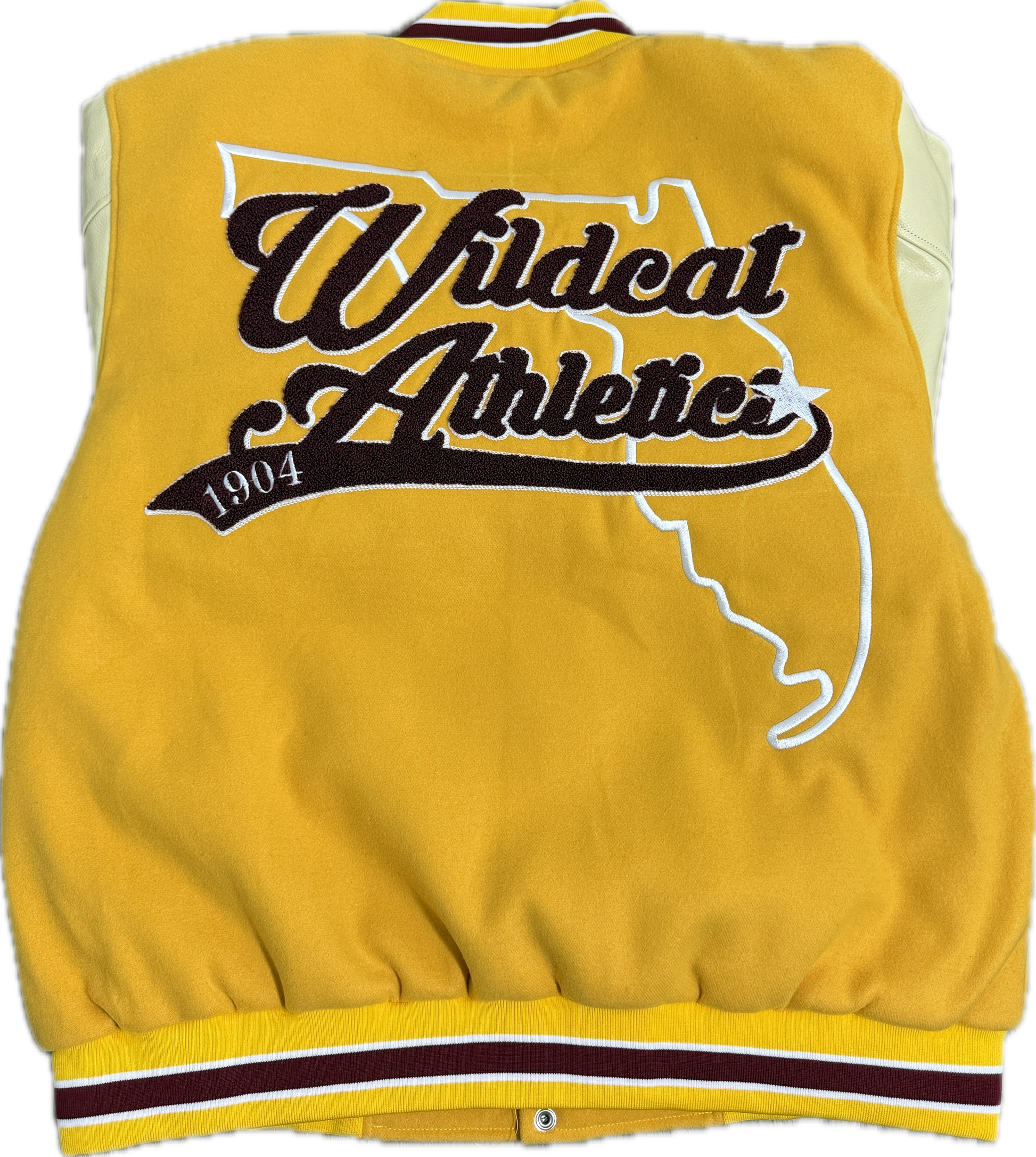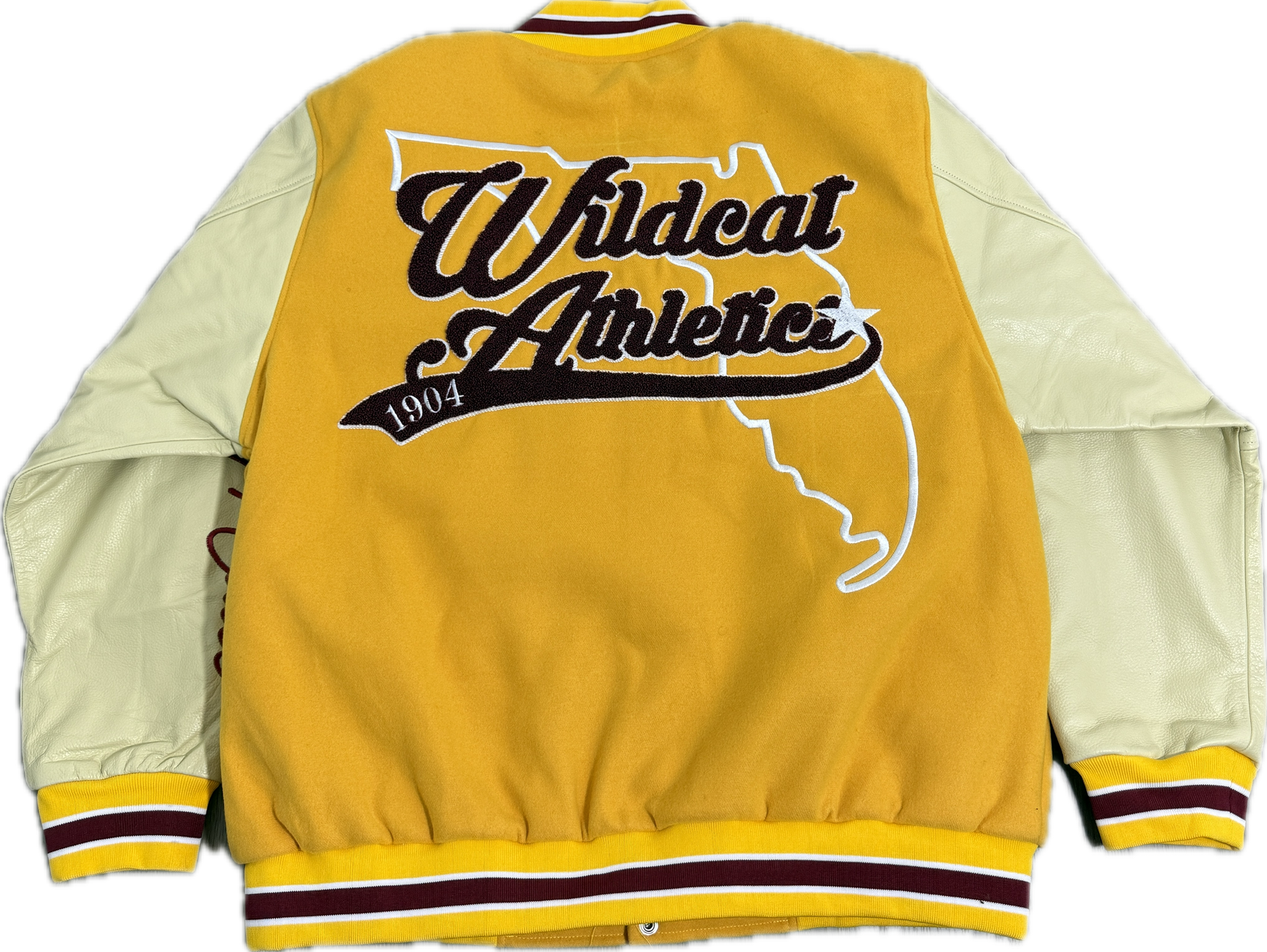 Details: Gold/Tan collegiate-style Varsity Letterman jacket
