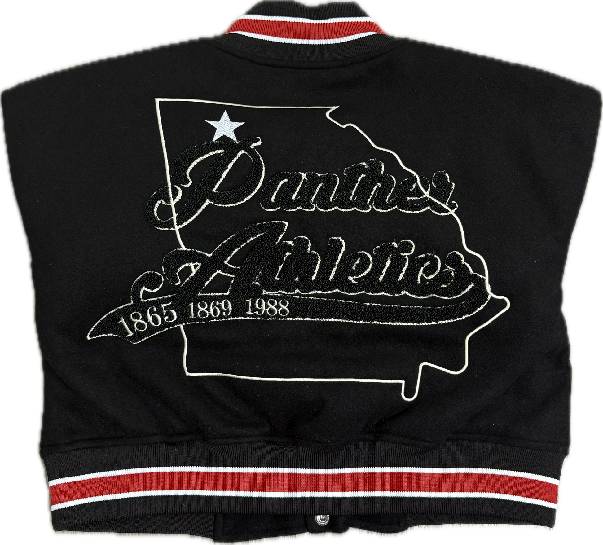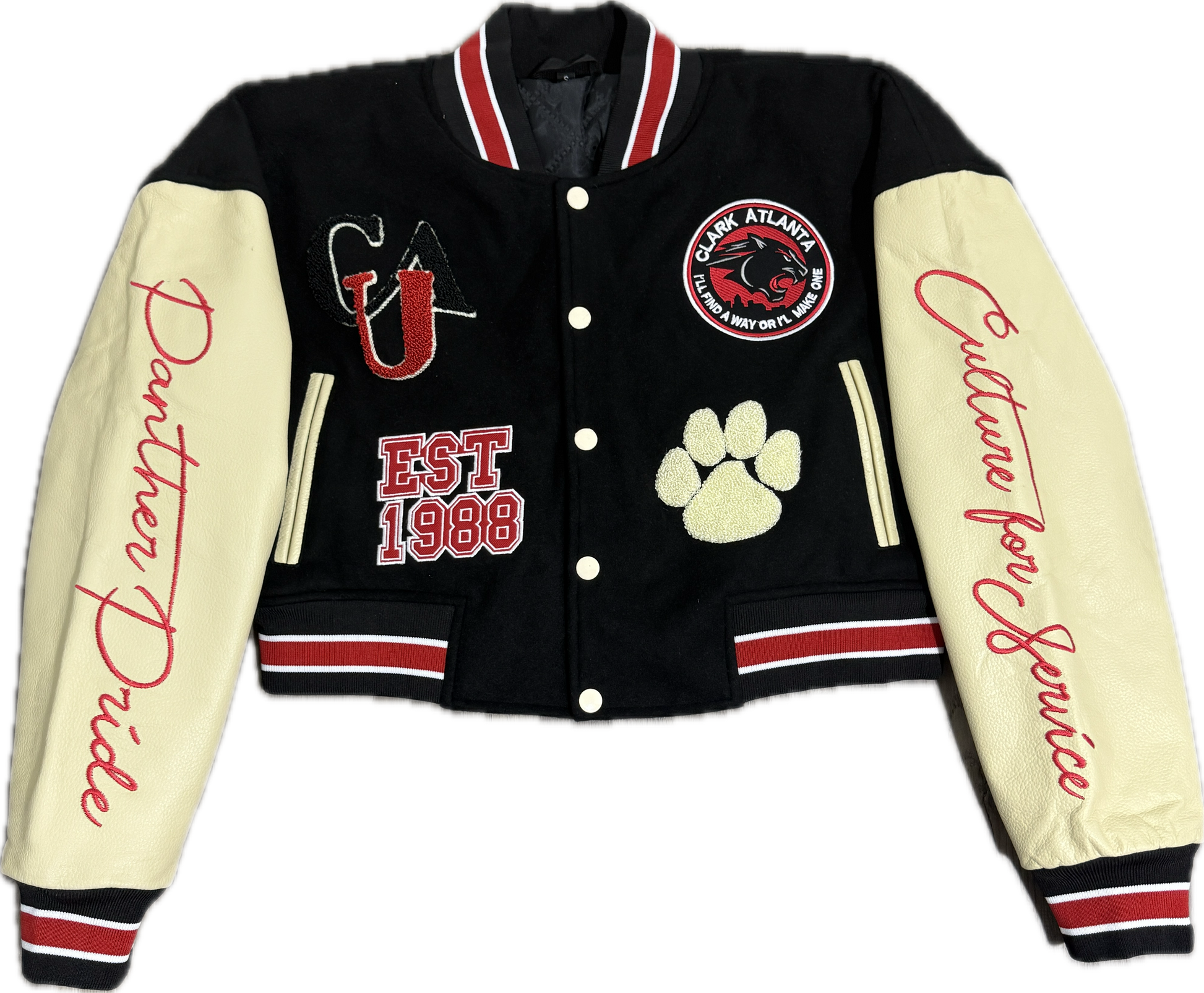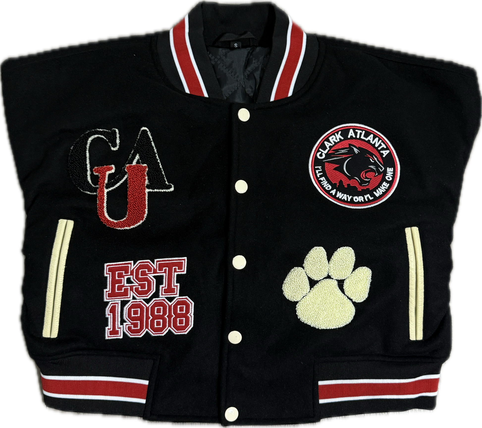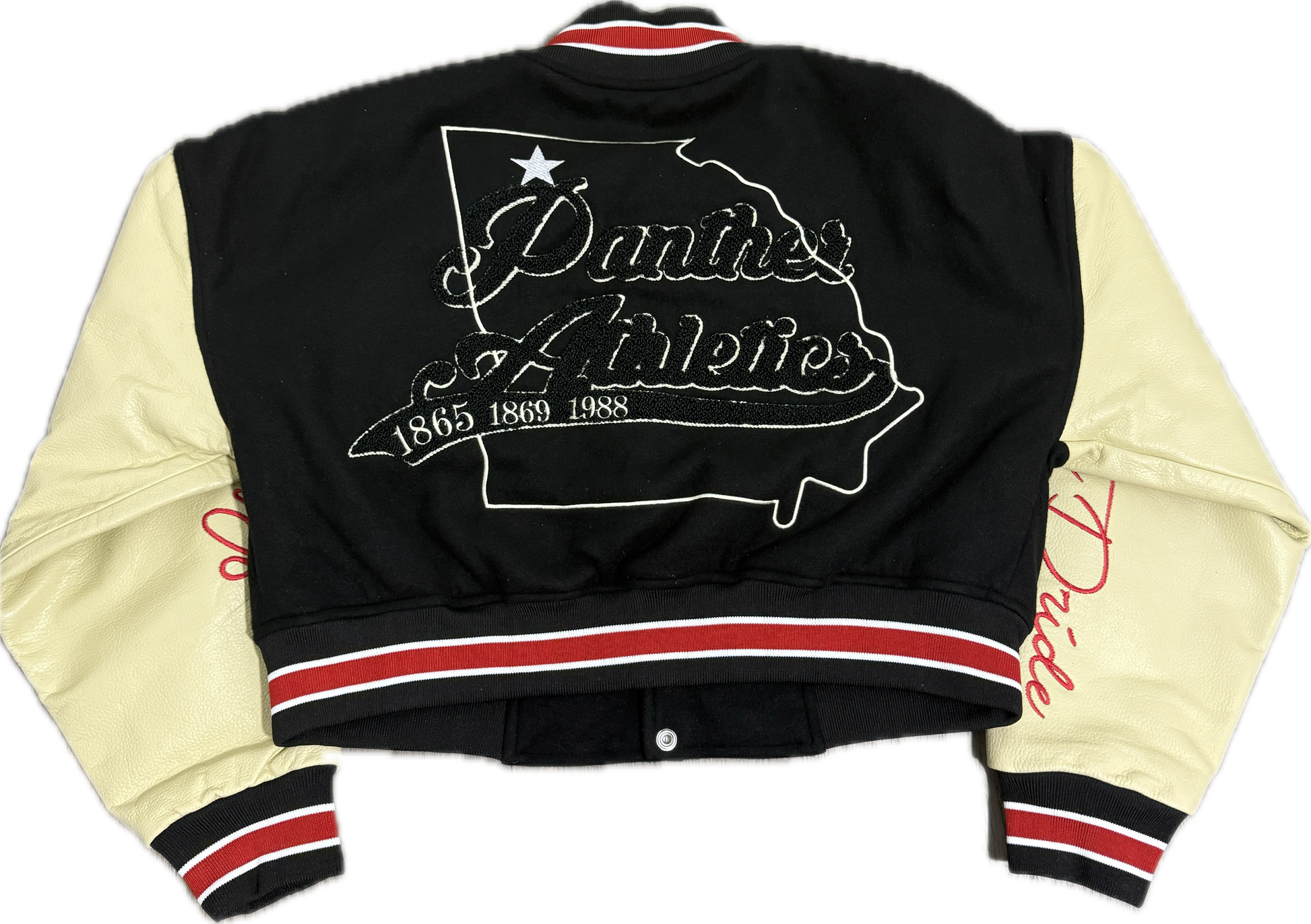 Details: Black/Tan collegiate-style Varsity Letterman jacket