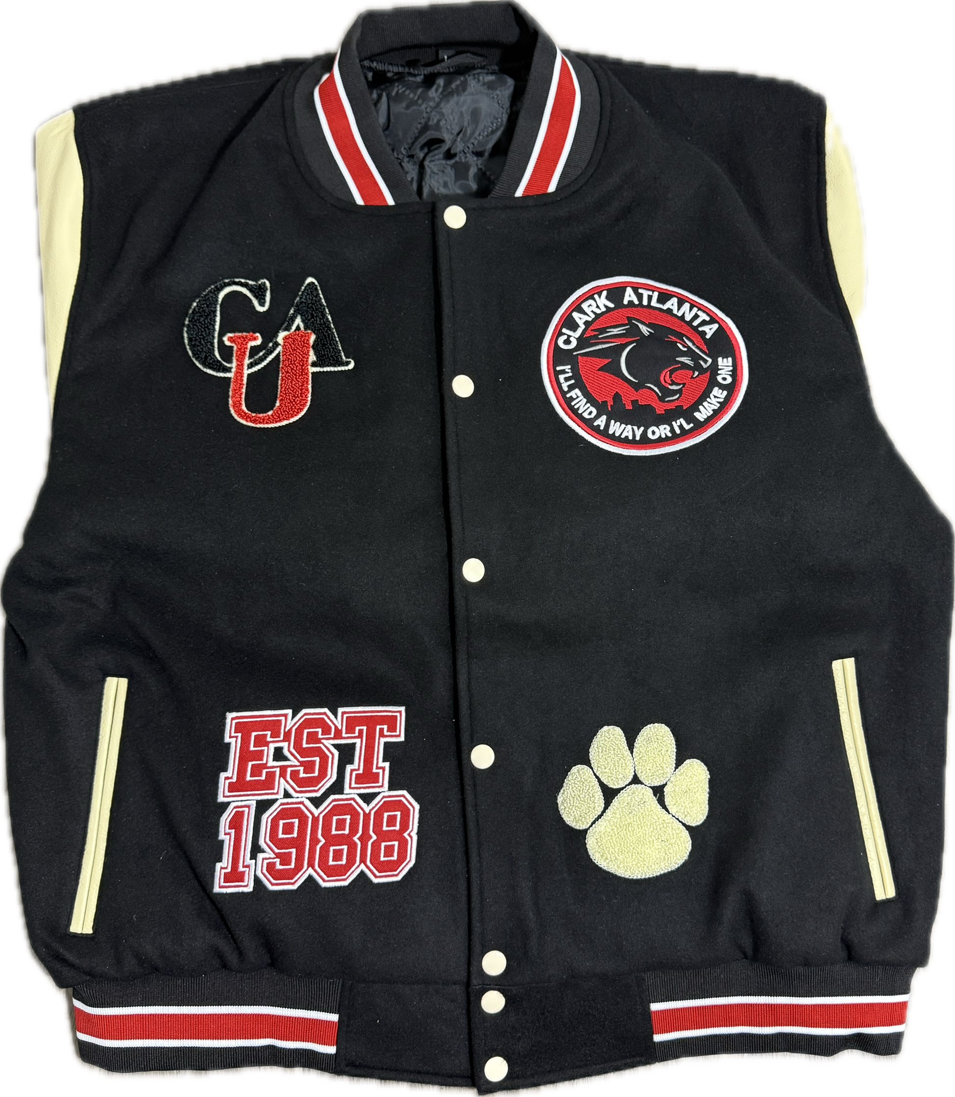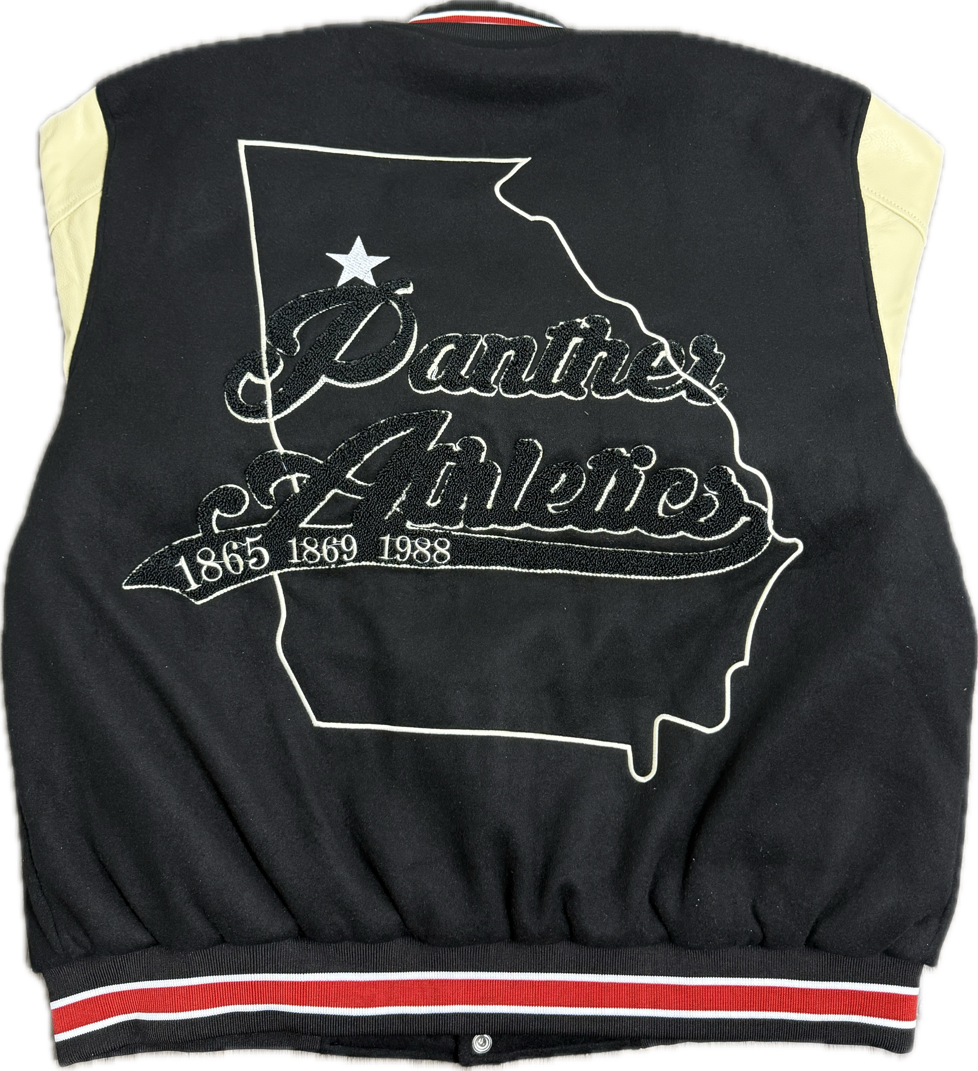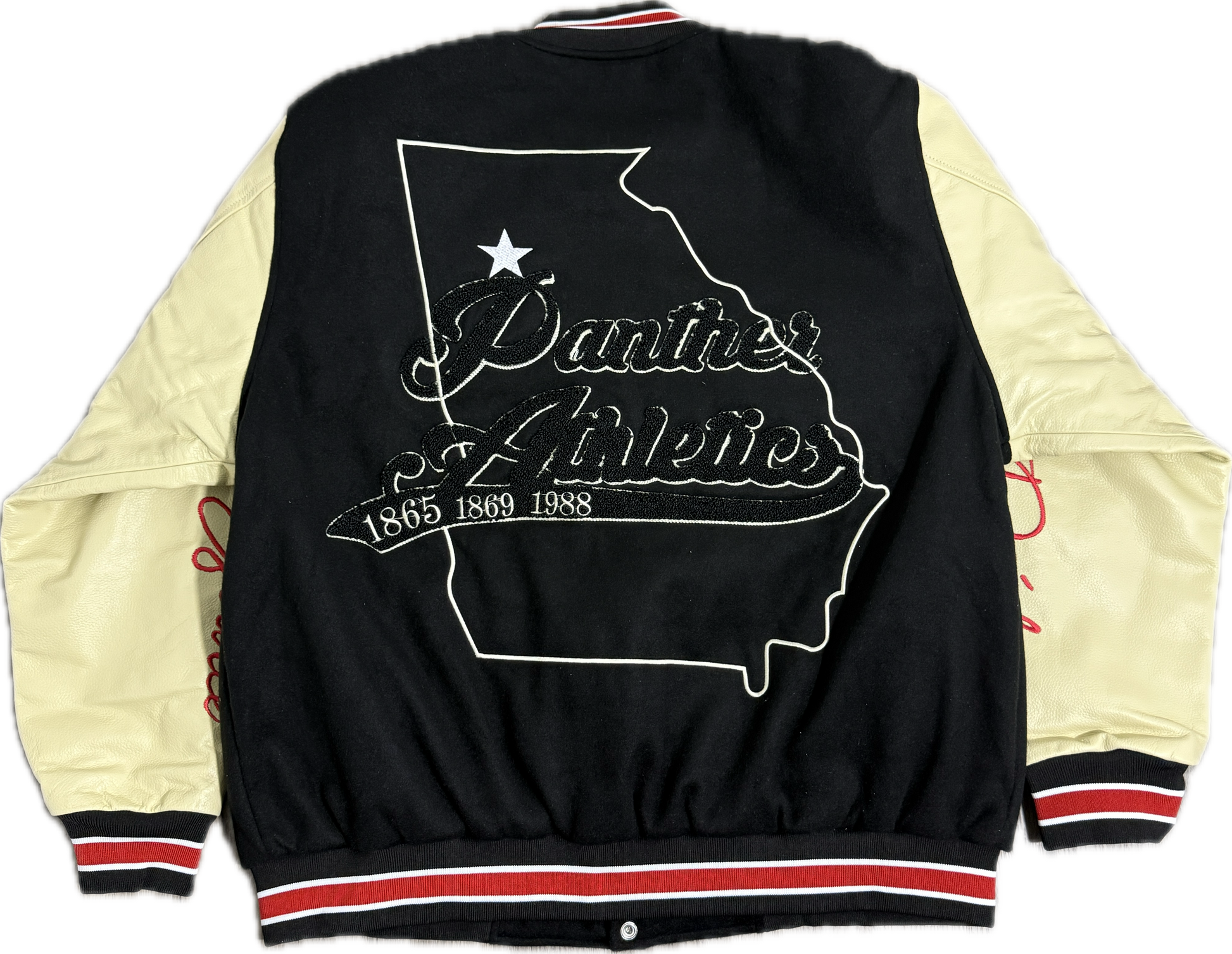 Details: Black/Tan collegiate-style Varsity Letterman jacket