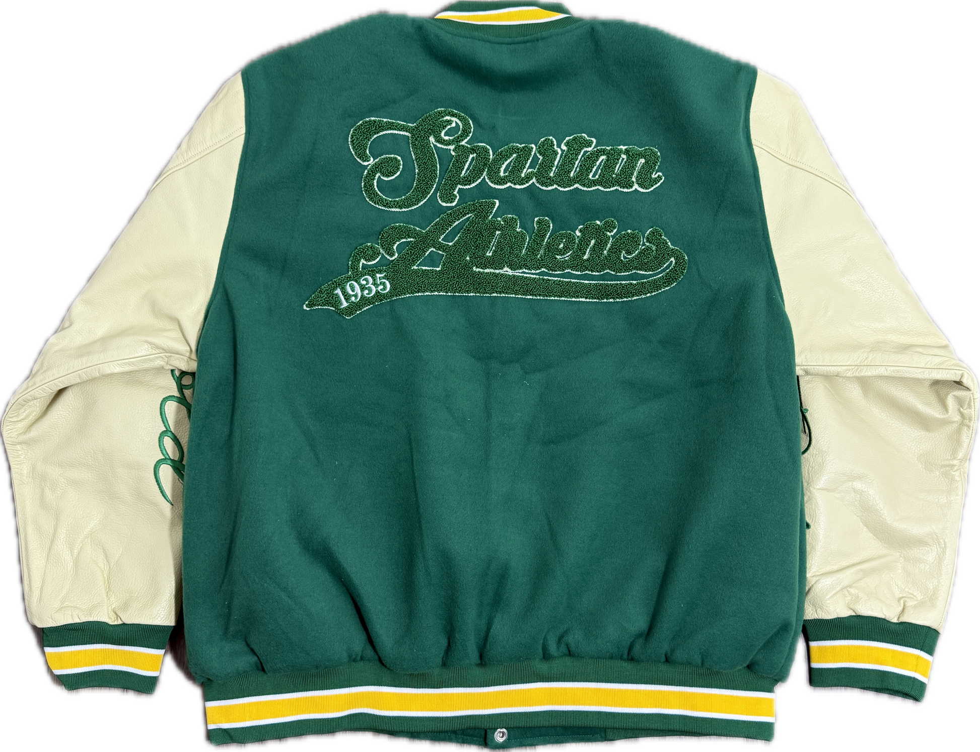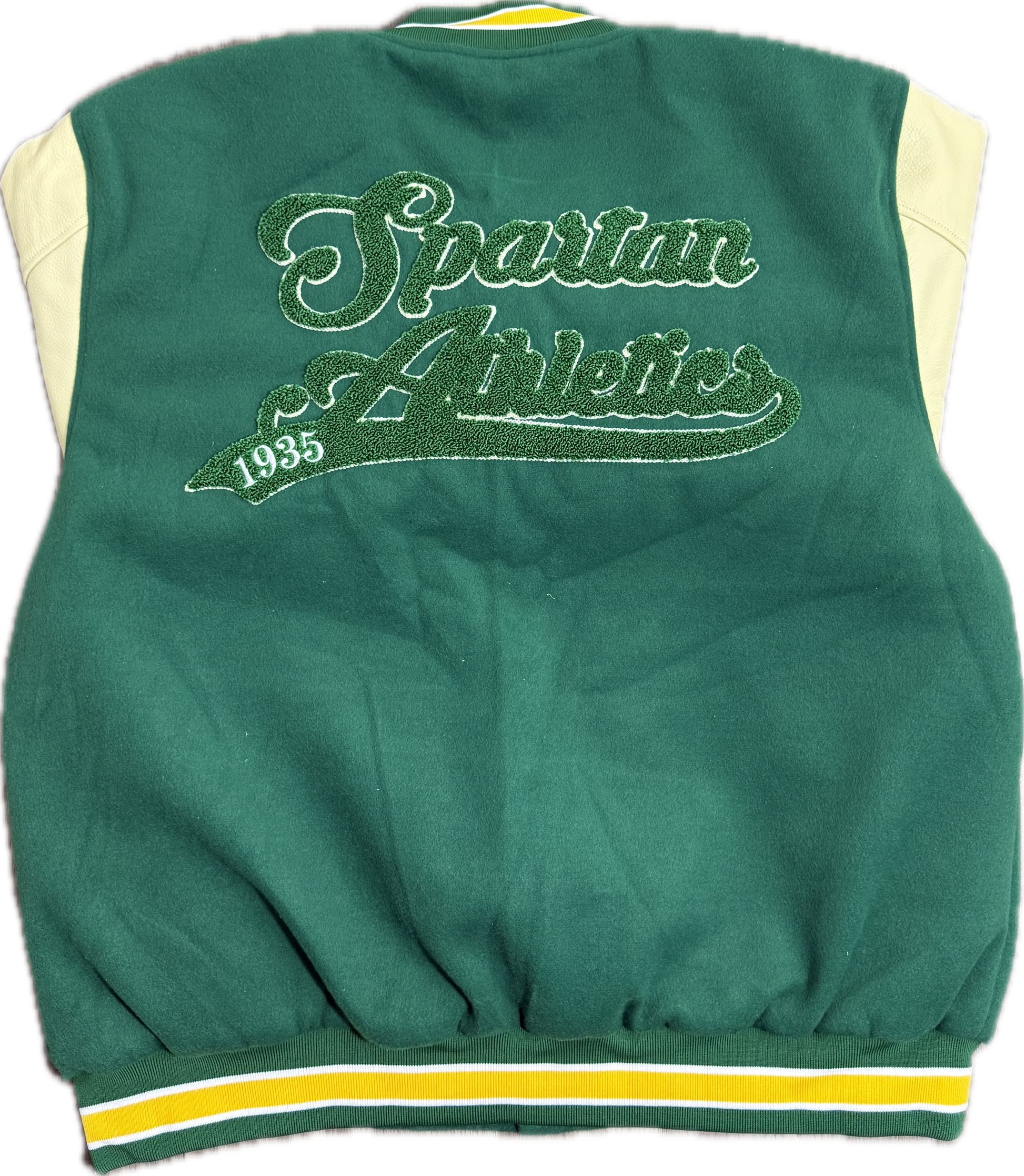 Details: Green/Tan collegiate-style Varsity Letterman jacket