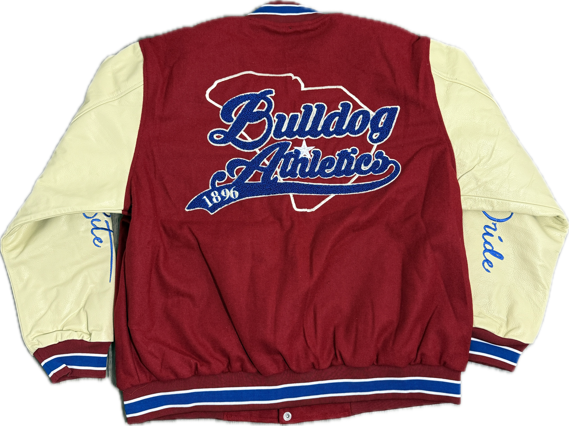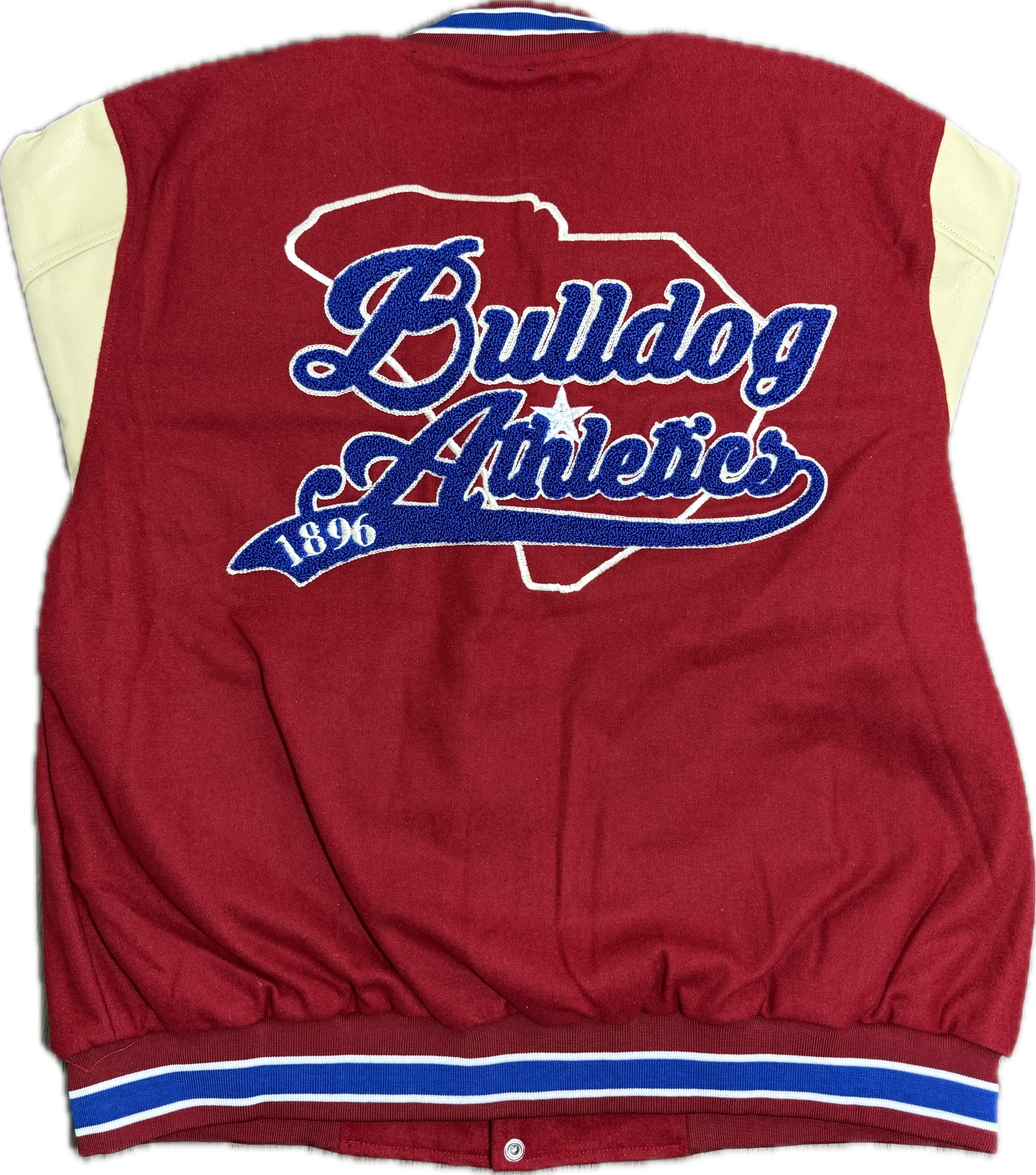 Design: Direct embroidery on sleeves, chenille & embroidery patches on the front and back.