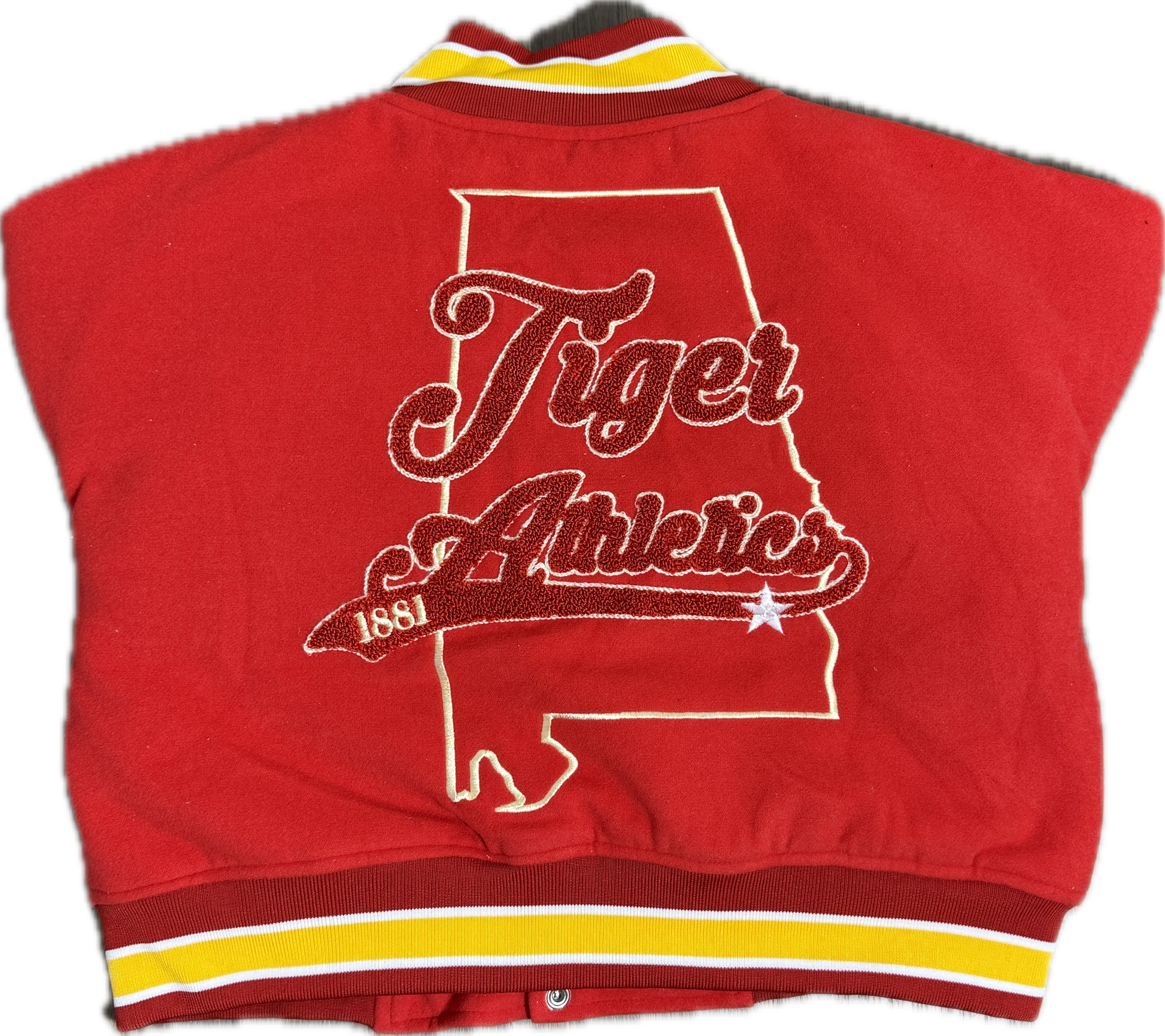Design: Direct embroidery on sleeves, chenille & embroidery patches on the front and back.