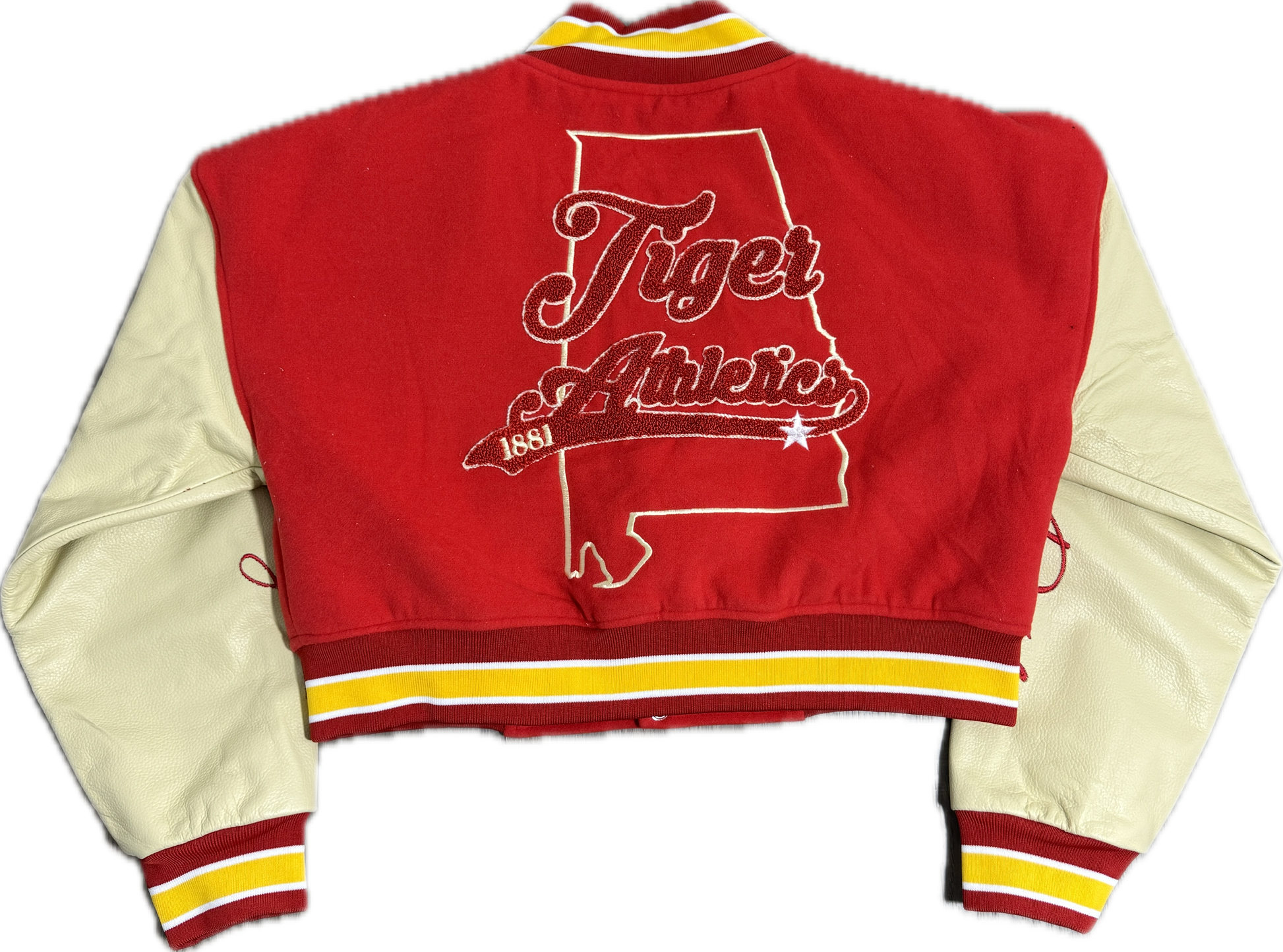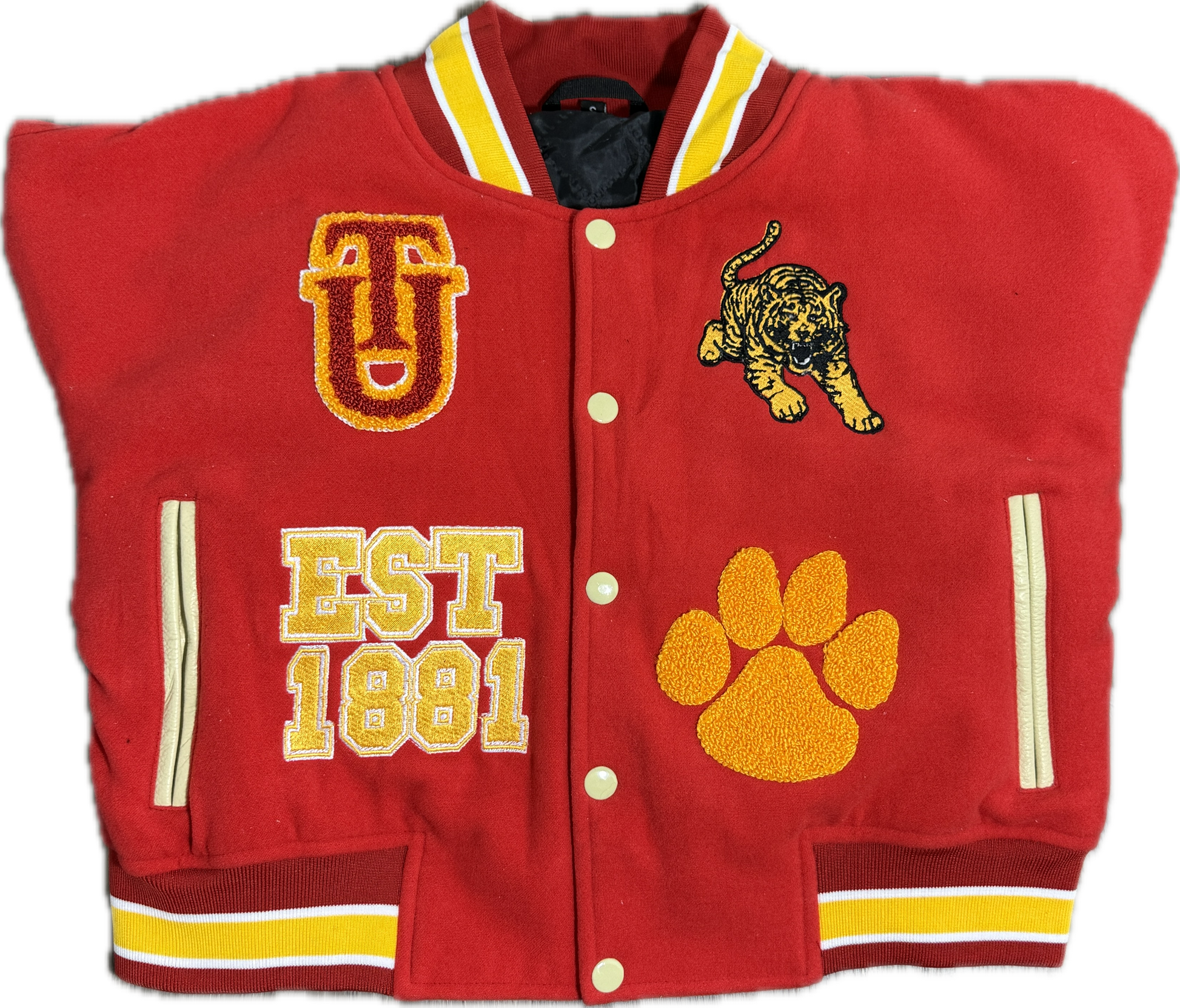 Details: Red/Tan collegiate-style Varsity Letterman jacket